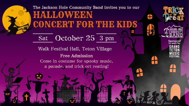 Join the Jackson Hole Community Band's annual Halloween concert for an afternoon of family fun, music & trick-or-treating.
