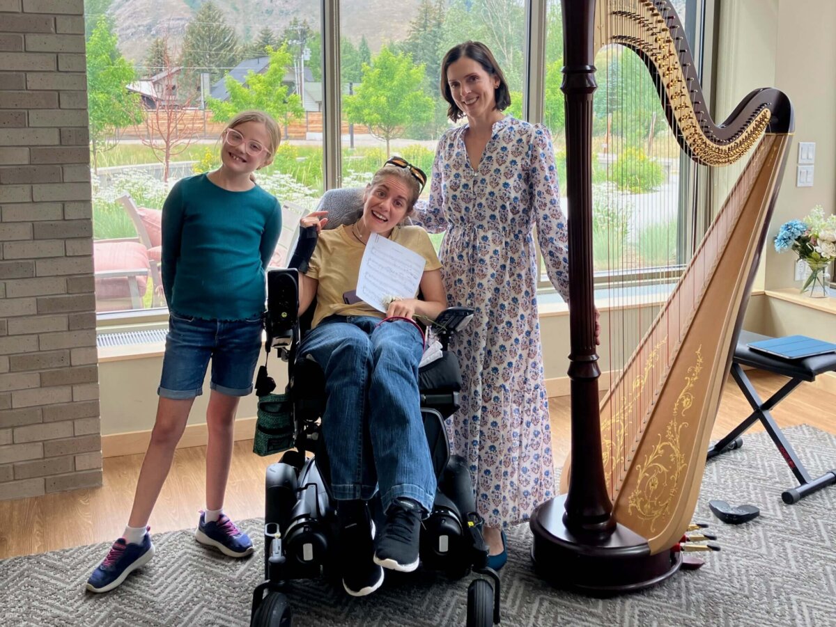 Alongside the Grand Teton Music Festival’s world-class summer festival programming, some of our most meaningful collaborations happen quietly behind the scenes. During summer 2025, GTMF harpist Elisabeth Remy Johnson shared an inspiring solo performance at Sage Living, featuring music primarily by women composers—and a very special original composition by a Sage Living resident.