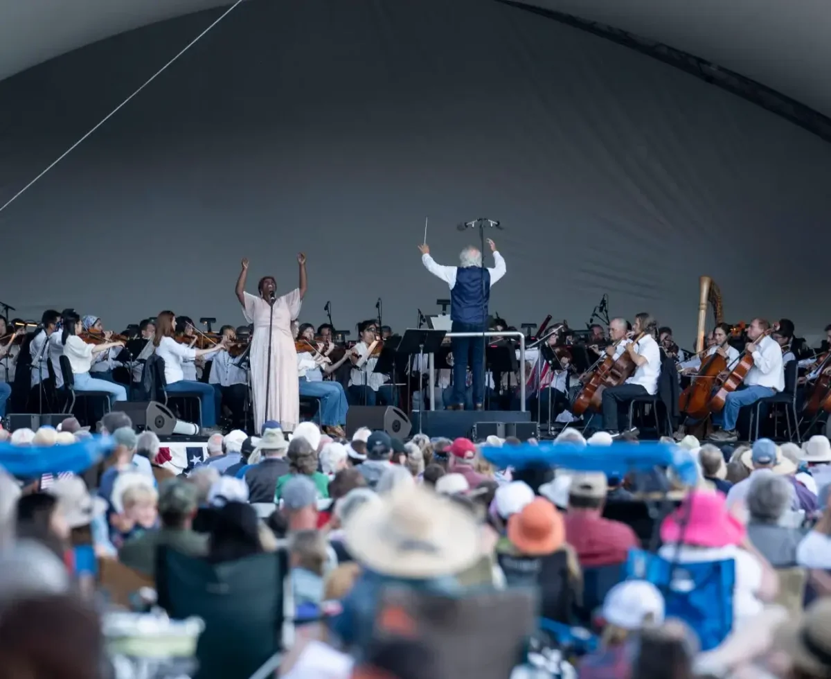 Jackson Hole’s summertime orchestra gathers July 2 through Aug. 15 for its 20th season under the baton of Music Director Sir Donald Runnicles, with seven weekends of symphonic works, five nights of chamber music, four intimate house concerts, three genre-blending “Gateway” events and scores of free musical gatherings.